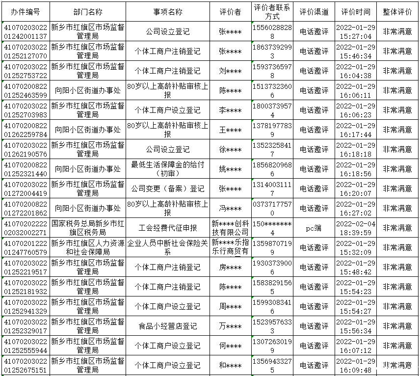 为主动接受社会群众监督,进一步提升政务服务水平,现将全区2022年1月29日-2月4日