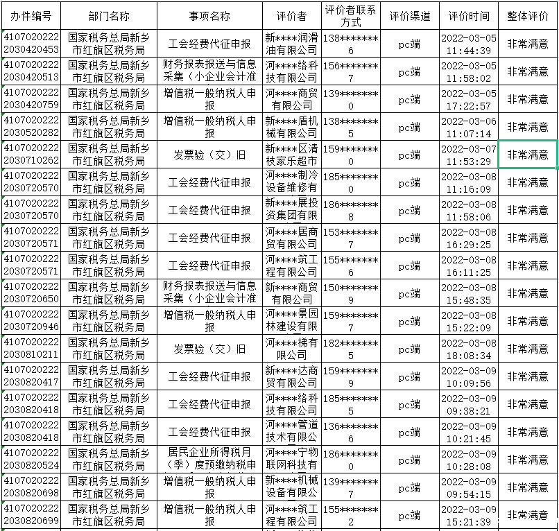 年3月5日-3月11日政务服务“好差评”结果公示如下: