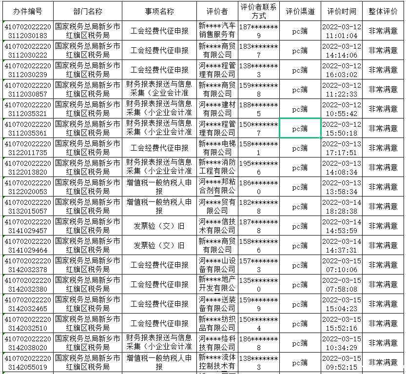 为主动接受社会群众监督,进一步提升政务服务水平,现将全区2022年3月12日-3月18日政务服务“好差评”结果公示如下: