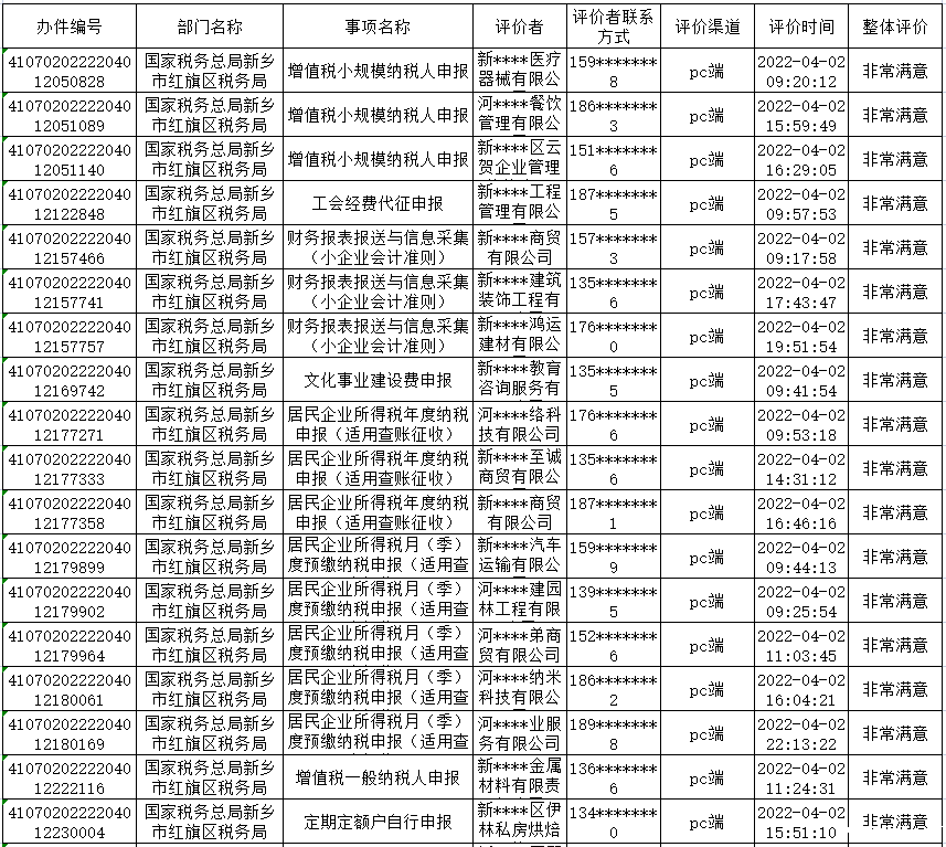 年4月2日-4月8日政务服务“好差评”结果公示如下:
