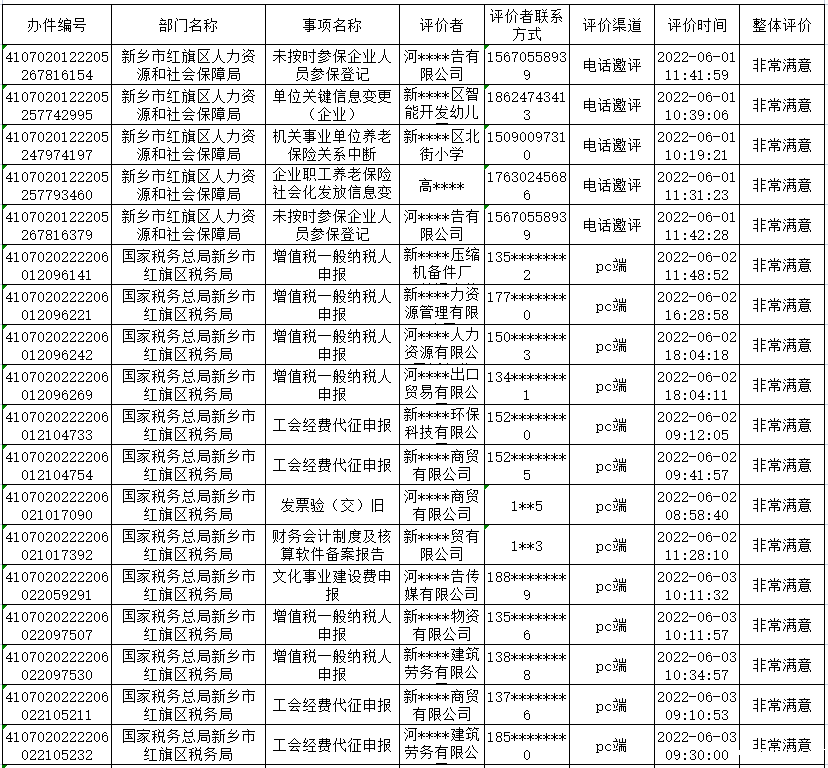 年5月28日-6月3日政务服务“好差评”结果公示如下: