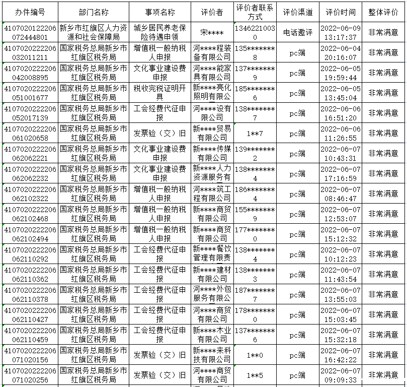 2022年6月4日—6月10日政务服务“好差评”结果公示