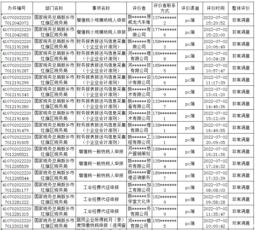年7月2日-7月8日政务服务“好差评”结果公示如下: