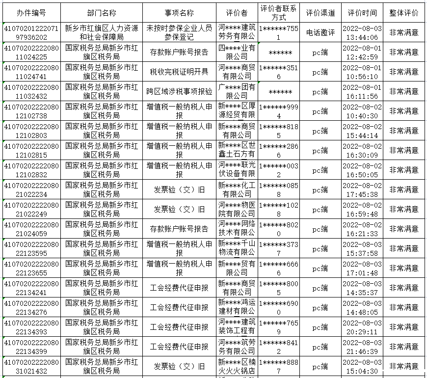 年7月30日-8月5日政务服务“好差评”结果公示如下: