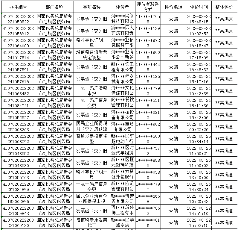 2022年8月13日—8月19日政务服务“好差评”结果公示