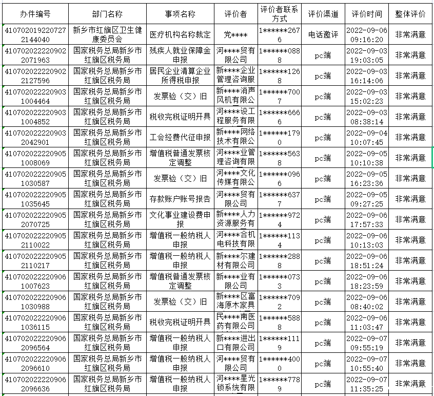红旗区2022年8月份政务服务“好差评”结果公示