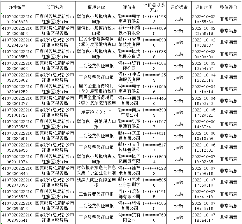 年10月1-10月7日政务服务“好差评”结果公示如下: