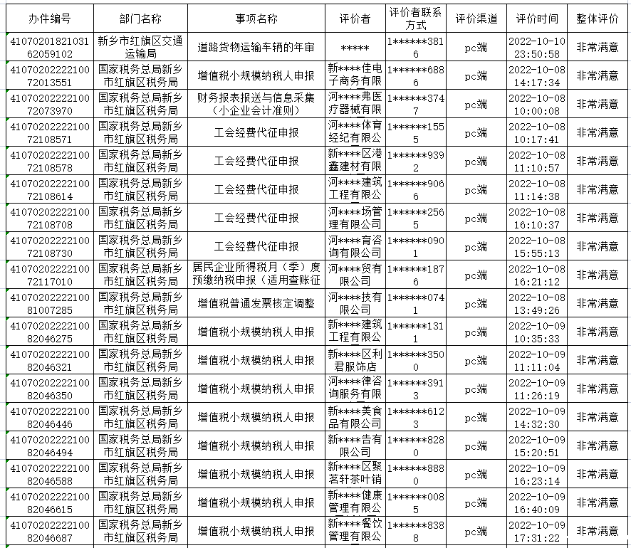 为主动接受社会群众监督,进一步提升政务服务水平,现将全区2022年10月8日-10月14日政务服务“好差评”结果公示如下: