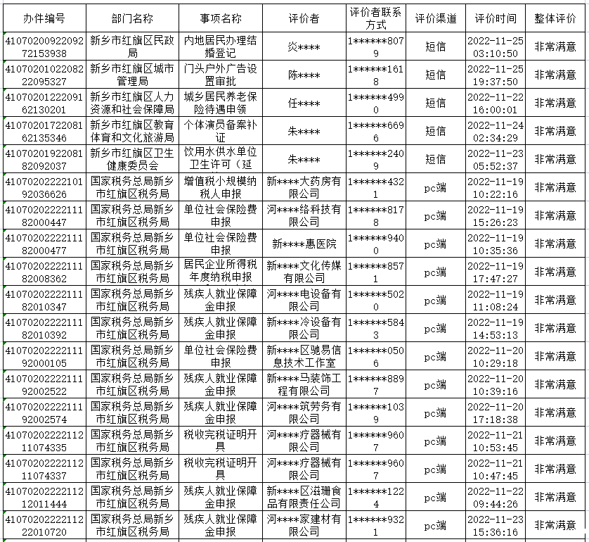 为主动接受社会群众监督,进一步提升政务服务水平,现将全区2022年11月19日-11月25日政务服务“好差评”结果公示如下: