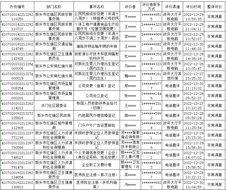 为主动接受社会群众监督,进一步提升政务服务水平,现将全区2022年12月24日-12月31日政务服务“好差评”结果公示如下: