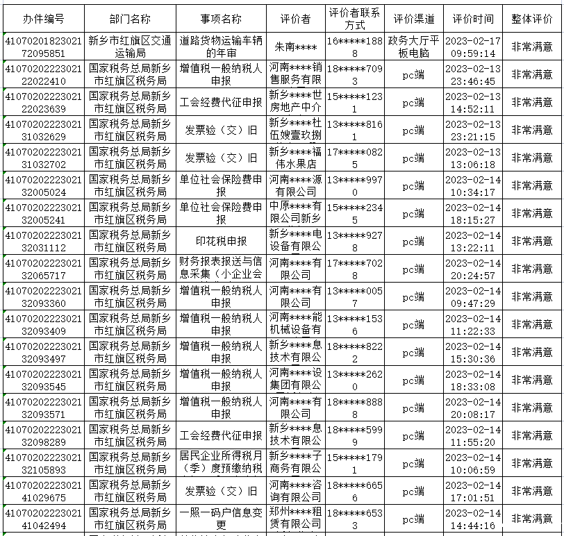 为主动接受社会群众监督,进一步提升政务服务水平,现将全区2023年2月13日-2月19日政务服务“好差评”结果公示如下: