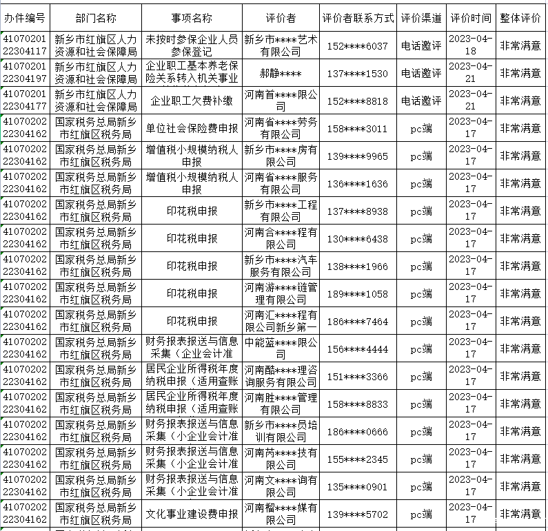 年4月17日-4月23日政务服务“好差评”结果公示如下: