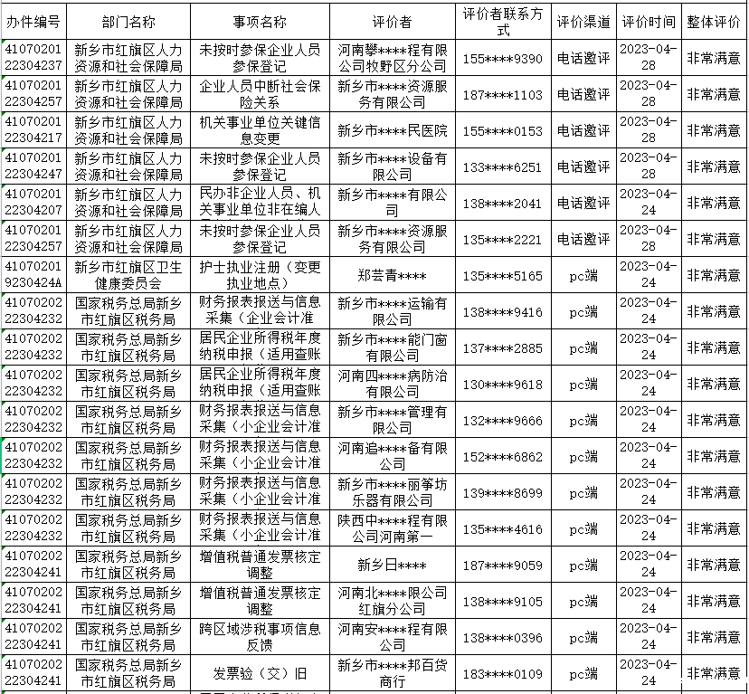 年4月24日-4月30日政务服务“好差评”结果公示如下: