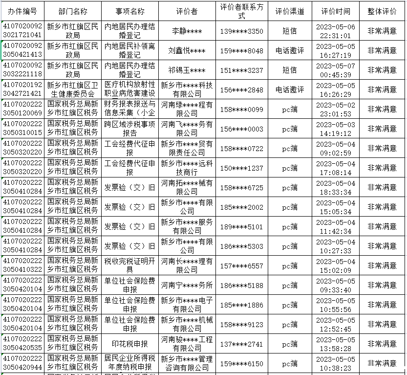 红旗区2023年4月份政务服务“好差评”结果公示