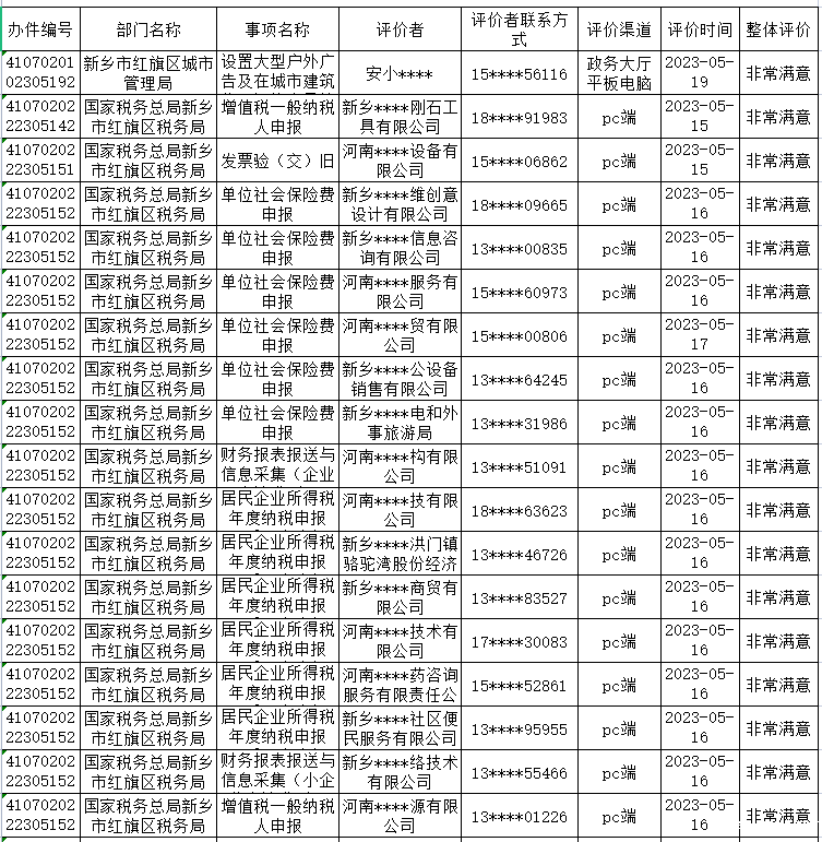 年5月15日-5月21日政务服务“好差评”结果公示如下: