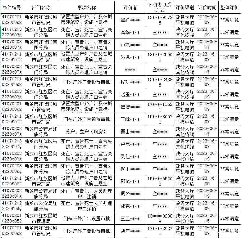 年6月5日-6月11日政务服务“好差评”结果公示如下: